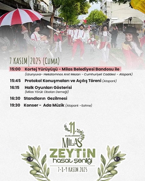Milas’ın coğrafi işaretli ürünü Milas Zeytinyağı başta olmak üzere ilçenin tarımsal değerlerinin tanıtımı açısından büyük önem taşıyan şenlik 7-8-9 Kasım tarihlerinde düzenlenecek.