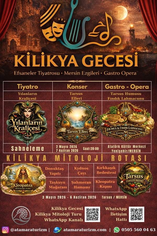 Etkinlik ve mitoloji turu hakkında detaylı bilgiye Kilikya Gecesi ve Kilikya Mitoloji Turu WhatsApp kanalları üzerinden ulaşılabiliyor.